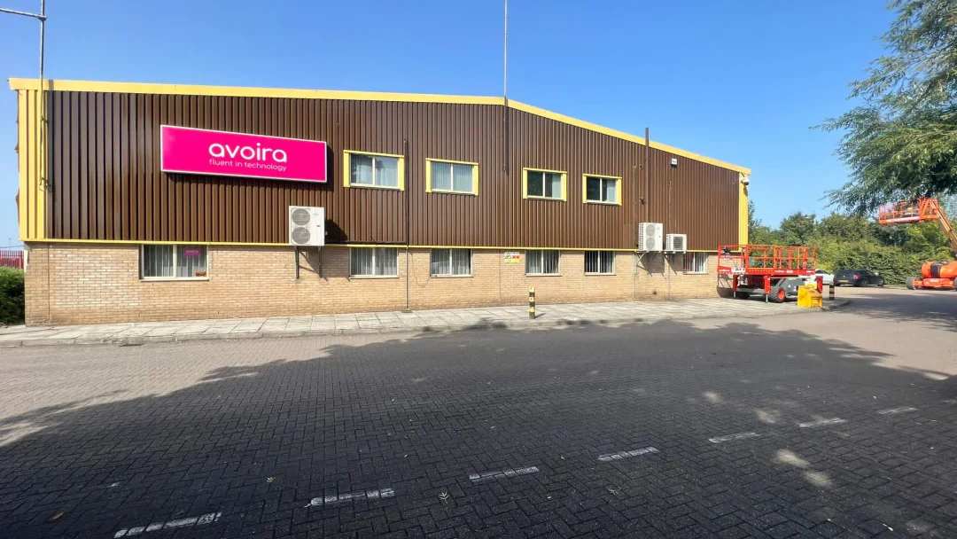 Full profiled steel cladding re-coat at Avoira's Bristol commercial premises, transforming a faded exterior to a brand-matched finish. Completed with MEWP access around normal business hours.