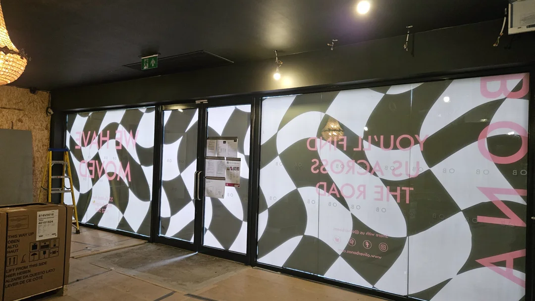 200 Degrees Coffee required a recoat of the shop front at their Nottingham city centre location. The aluminium frames and entrance metalwork had lost colour and adhesion, and a full preparation and recoat cycle was required to restore the brand-specification dark finish and protect the substrate against further deterioration.