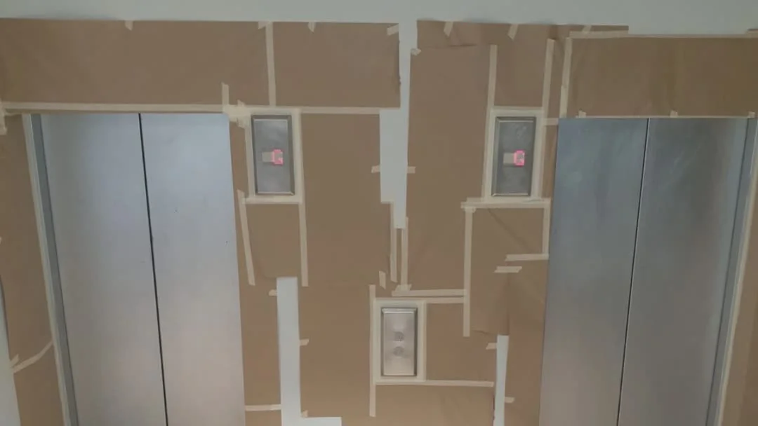 The building management team commissioned Vanda Coatings to modernise the lift lobby areas across a multi-storey London commercial office. The existing silver-finish lift doors had become scratched and tired-looking, and a full colour change to jet black was specified as part of a wider interior refresh.