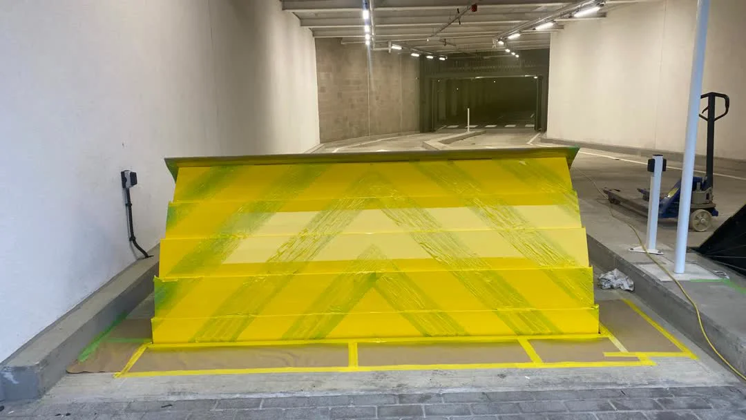 The client required a programmed recoat of road blockers and security street furniture across the Newcastle site. The steel and aluminium components had suffered weathering, impact damage and corrosion, and the existing coating had deteriorated to the point where recoating was required both to restore appearance and to prevent further substrate degradation.
