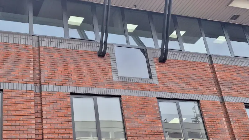 Oxidised, faded, or wrong-colour curtain wall frames recoated on-site. No glazing removal, no structural work, no scaffold hire for months. We work at height on occupied buildings across the UK, typically saving 80-90% vs frame replacement.